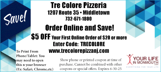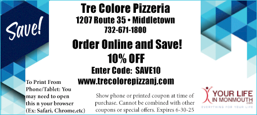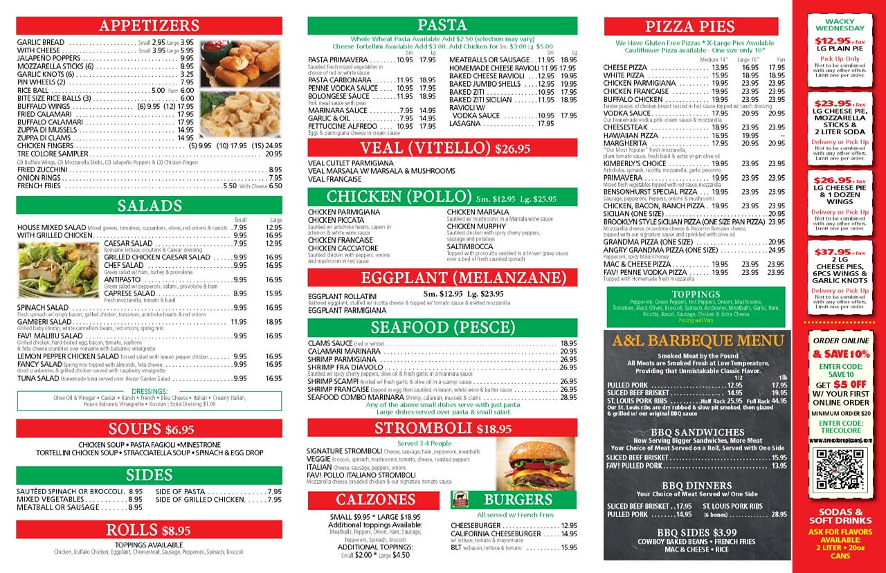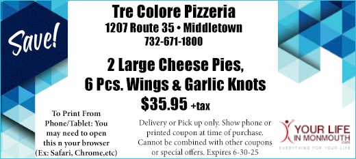 Select your favorite Pizza, Italian, Mexican or BBQ dishes directly from the menu of Tre Colore Pizzeria located at 1207 Route 35, Middletown, NJ 07748.